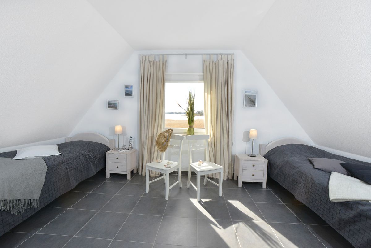 Das wunderschöne Reetdachhaus "Boddenblick" befindet sich in 1. Reihe direkt hinter dem Deich des Breeger Boddens. Sie genießen von der großzügigen Terrasse den traumhaften Panoramablick über die Boddenlandschaft. Der feinkörnige, weiße Sandstrand der Ostsee von Juliusruh ist nur ein paar Gehminuten entfernt.