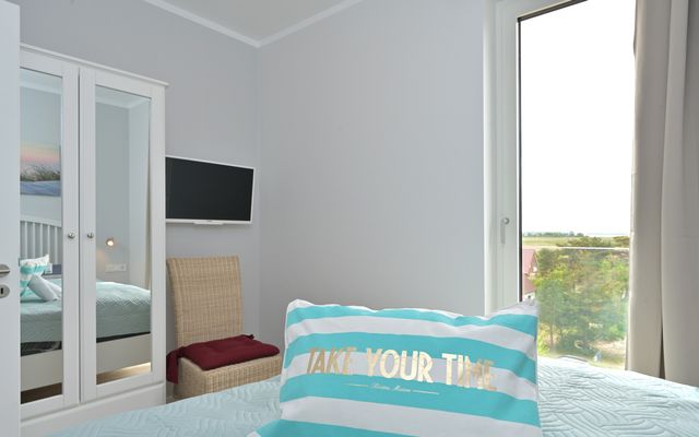 Nach ca. 1 km erblicken Sie das „Haus Seezeichen“ (rot-weißes Gebäude im Ortszentrum). Biegen Sie hier links ab. Nach ca. 30 m sehen Sie auf der rechten Seite das Büro der FEMARIS GmbH. Hier erfolgt die Schlüsselübergabe.