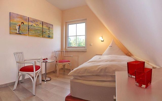 Nach ca. 1 km erblicken Sie das „Haus Seezeichen“ (rot-weißes Gebäude im Ortszentrum). Biegen Sie hier links ab. Nach ca. 30 m sehen Sie auf der rechten Seite das Büro der FEMARIS GmbH.