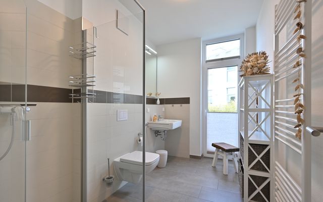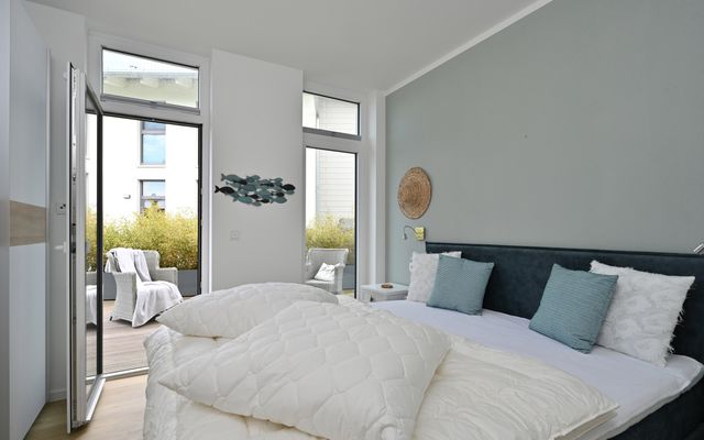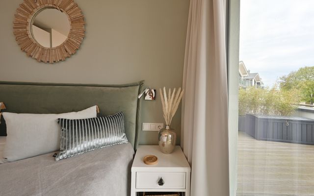 Die großzügigge Ferienwohnung "Waveside" hat alles was das Urlaubsherz begehrt - zwei Schlafzimmer mit je einem Doppelbett (durchgehende Matratzen), ein Bad mit Dusche, ein Gäste-WC, ein Wohnzimmer mit Kamin und integrierter Küche. Auf dem Balkon oder der riesigen Dachterrasse (ca. 70qm) genießen Sie die Nähe zum Meer. Die Ostsee und der weiße Sandstrand sind nur zwei Gehminuten entfernt.