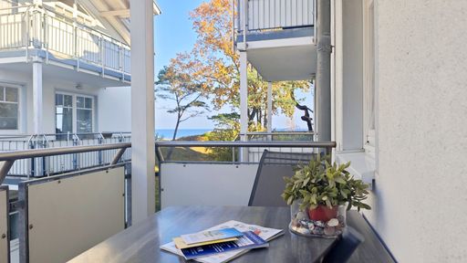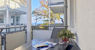 Die Ferienwohnung "Strandperle" ist eine exklusive Unterkunft im Strandhaus Juliusruh. Sie liegt direkt hinter der Düne des Ostseebades Breege/Juliusruh. Sie besitzt 2 Balkone. Durch die Lage im 2. Obergeschoss schauen Sie vom Ost-Balkon weit über den Sandstrand der Schaabe und die Ostsee. Der Südbalkon liegt geschützt. Dort lässt es sich auch bei etwas mehr Wind gemütlich in der Sonne relaxen. Die Wohnung ist hochwertig und ausgesprochen geschmackvoll und modern eingerichtet. In den Wohnbereich mit Couchecke, Sessel, Flatscreen-TV und Essbereich ist eine Küche integriert. Auch von hier aus erfreut Sie der einmalige Blick auf das Meer. Das Schlafzimmer verfügt über ein Doppelbett und grenzt an den Südbalkon.