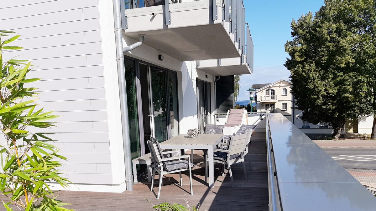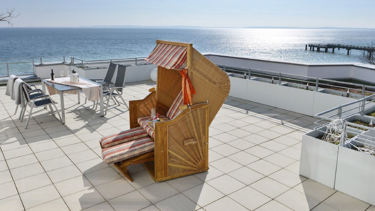 Die "Suite Meersinn" liegt direkt an der Strandpromenade von Sassnitz. Es sind nur 10 Meter bis zur Ostsee. Näher am Meer wohnen, geht nicht!!! Genießen Sie auf der 82 m² großen Dachterrasse schon beim Frühstück die Sonne und den freien Blick auf die See. Bei zu viel Sonne oder Wind ziehen Sie sich einfach in den Strandkorb zurück. Und selbst abends können Sie traumhaften Meerblick, Ruhe, Erholung noch mit den letzten Sonnenstrahlen des Tages genießen.