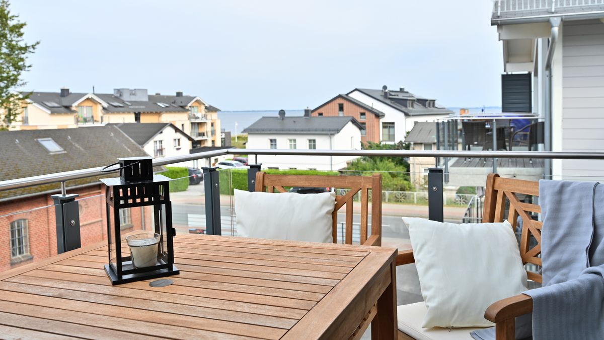 Die Ferienwohnung "OstseePanorama" befindet sich im neuerbauten "Haus Seezeichen" im Ortszentrum des Erholungsortes Glowe. Auf 70qm Gesamtwohnfläche verteilen sich ein gemütlicher Wohnraum mit integrierter Küche, 2 Schlafzimmer mit jeweils einem Doppelbett sowie ein Bad mit bodengleicher Dusche. Direkt anliegend genießen Sie an kühleren Tagen die Wärme in der Sauna/Infrarotkabine. Auf dem 10qm großen Balkon mit Süd-West-Ausrichtung genießen Sie die frische Seeluft mit Ausblick auf die Tromper Wiek bis hin zum Kap Arkona. Zur Wohnung gehört außerdem ein Parkplatz in der hauseigenen Tiefgarage. Im angrenzenden Haus "Bodden-Markt" steht eine Gemeinschaftssauna mit Relaxbereich zur Verfügung, welche Sie nach Anmeldung kostenfrei nutzen.