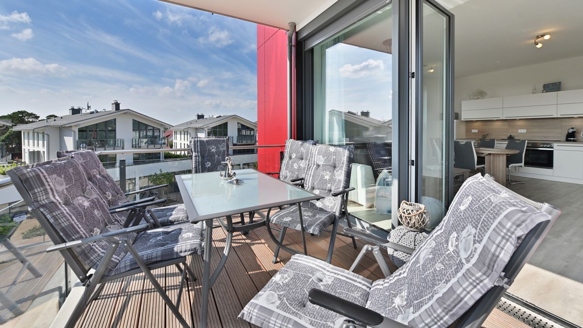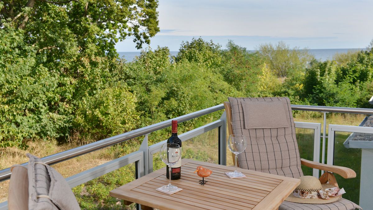 Die Ferienwohnung "Sonnensegler" befindet sich in der 1. Etage des Strandhauses Juliusruh am wunderschönen Ostseestrand der Schaabe. Sie besitzt einen großzügigen, geschützt liegenden Balkon mit seitlichem Meerblick. Die Ferienwohnung bietet optimalen Platz für 2 Erwachsene und 2 Kinder. Ihr Urlaubsdomizil besitzt ein Schlafzimmer mit Doppelbett, im Wohnbereich finden Sie eine gemütliche Couch mit Schlaffunktion und einen Flatscreen-TV, einen Essbereich sowie die mit allen Annehmlichkeiten ausgestattete Küche. Sie erreichen die Ferienwohnung auch bequem über einen Aufzug. Im Haus befinden sich eine Waschmaschine, ein Trockner und ein Abstellraum für Fahrräder. Ein Parkplatz steht Ihnen am Haus zur Verfügung. Die hauseigene Sauna nutzen Sie nach Anmeldung kostenfrei.
